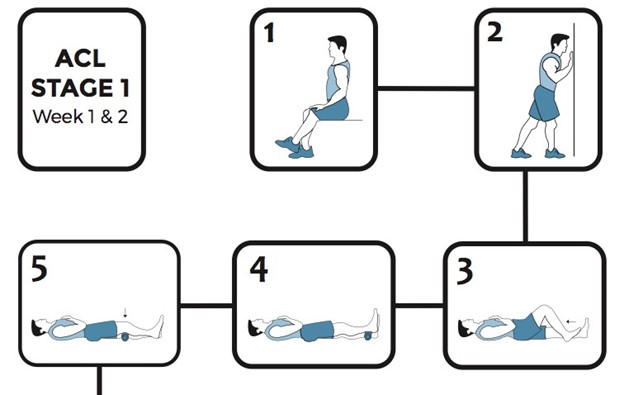 - Muscle activation: Quadriceps and hamstring strengthening begins with low-resistance exercises like leg raises and heel slides.